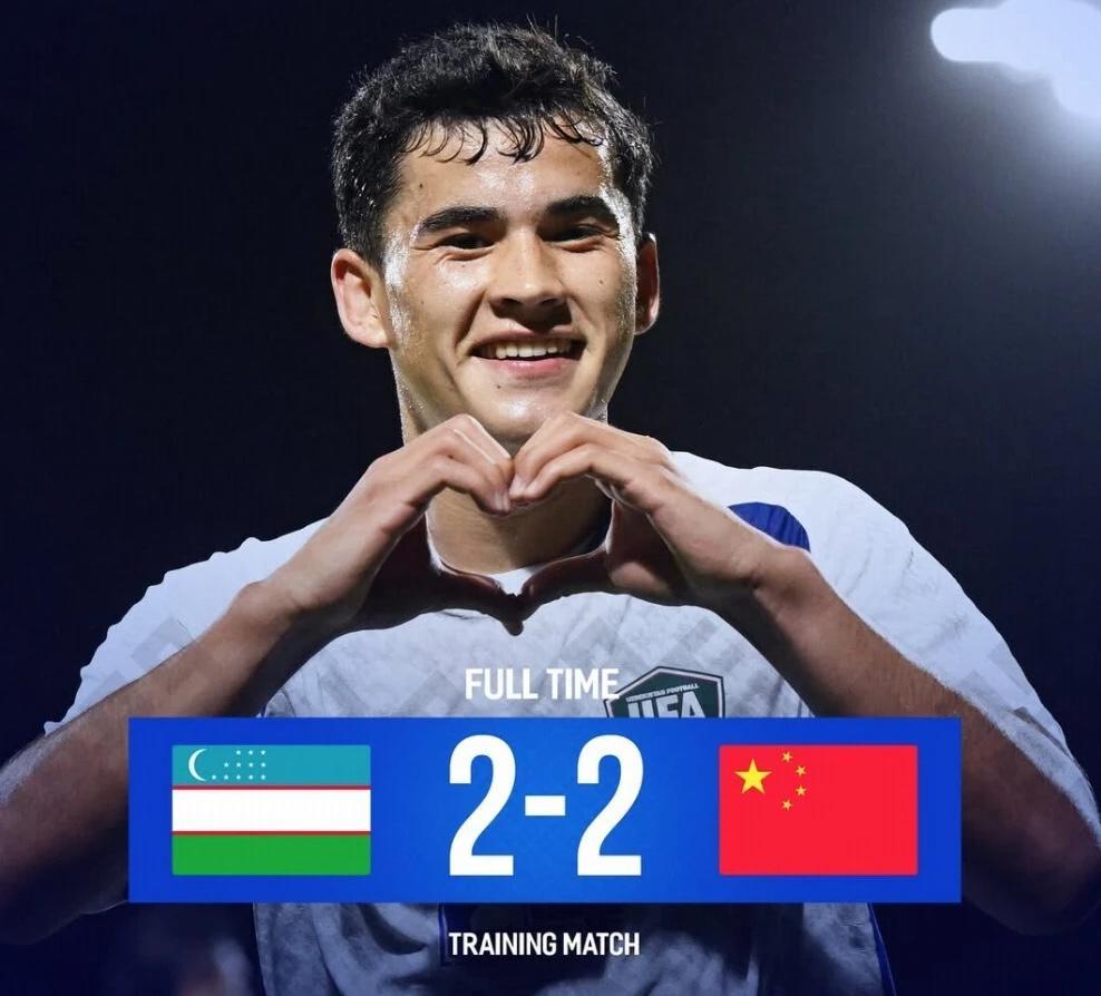 第二节比赛,双方均无建树,就当大家以为,中国队将带着胜利结束此次阿联酋之行时,变故在第三节发生。先是胡萨诺夫攻入一球,将比分缩小为了1-2,随后18岁的小将卡里莫夫在比赛的最后一分钟攻入了绝平的进球,中国队已经煮熟的鸭子,就这么飞走了!值得一提的是,为乌兹别克斯坦队打入第二粒进球的卡里莫夫,曾在U23亚洲杯对阵中国队的比赛里首发出战并打满了全场。不过他在点球大战中罚丢了一粒关键的点球,间接把中国U23送进了四强。所以他打进的这粒绝平进球,也算是国足替U23还礼了。